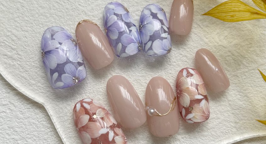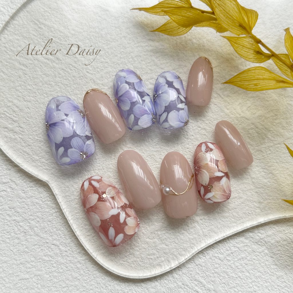「入学式ネイルにおすすめ🌸上品な手描きフラワーネイルデザイン」北与野駅徒歩6分!さいたま市で「キッズスペース完備」の自宅ネイルサロン